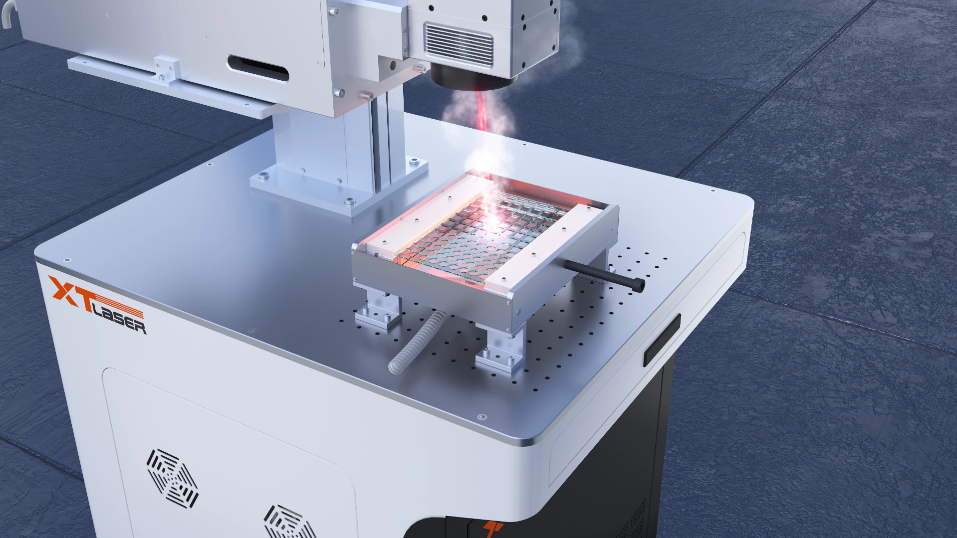 The infrared glass driling machine is a machine that utilizes a high-energy-density infrared laser beam to perform drilling through a galvanometer, it uses a single pulse to act point by point on the base material. The laser focus is installed in a predetermined desianed path to quickly scan and move on the alass to remove the glass material.