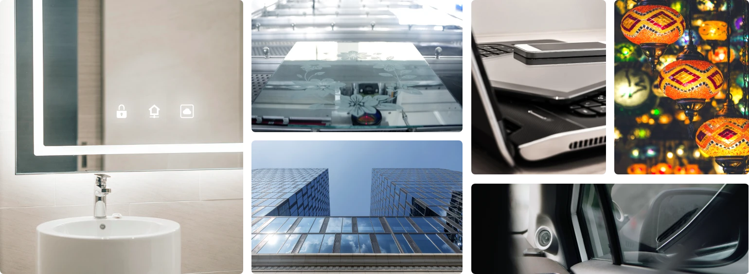 家居与智能镜面、建筑装饰、电子产品、汽车行业、艺术创作与定制化产品、灯具照明、商业展示等众多细分玻璃行业。